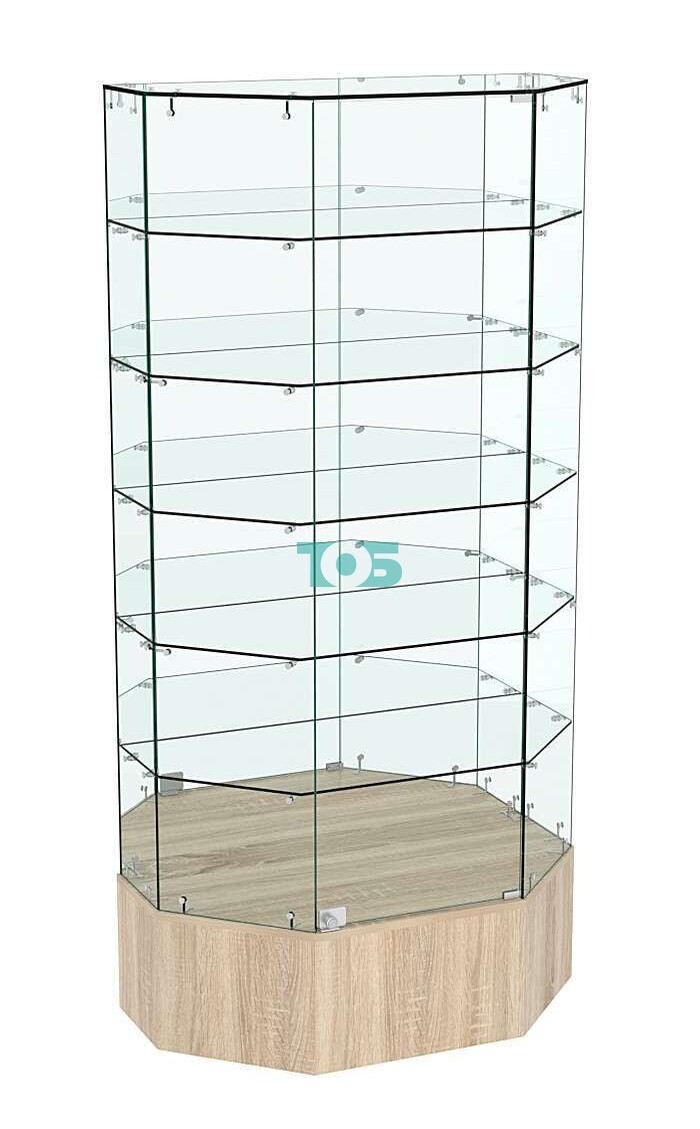 - стеклянная витрина Истра трапеция имеет два скошенных прозрачных торца, что позволяет избежать образования острых углов при установке витрины в выставочном зале и обеспечивает лучший обзор товара;