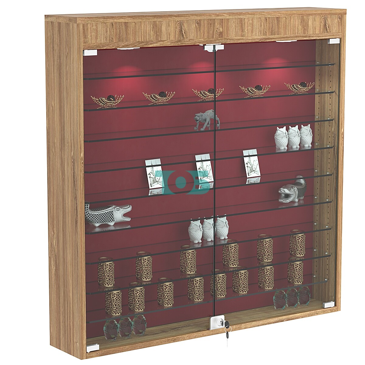 • Настенная витрина с бархатом серии БАРОН №4-4А (девять полок), Дуб Золотистый + 10 Green