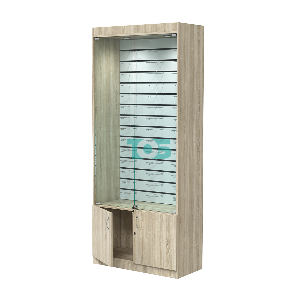 Витрина для очков №3 с задней стенкой из экономпанели — это функциональное и практичное решение для магазинов оптики и аксессуаров. Она разработана с учётом потребностей продавцов и покупателей, обеспечивая удобство демонстрации и хранения очков.