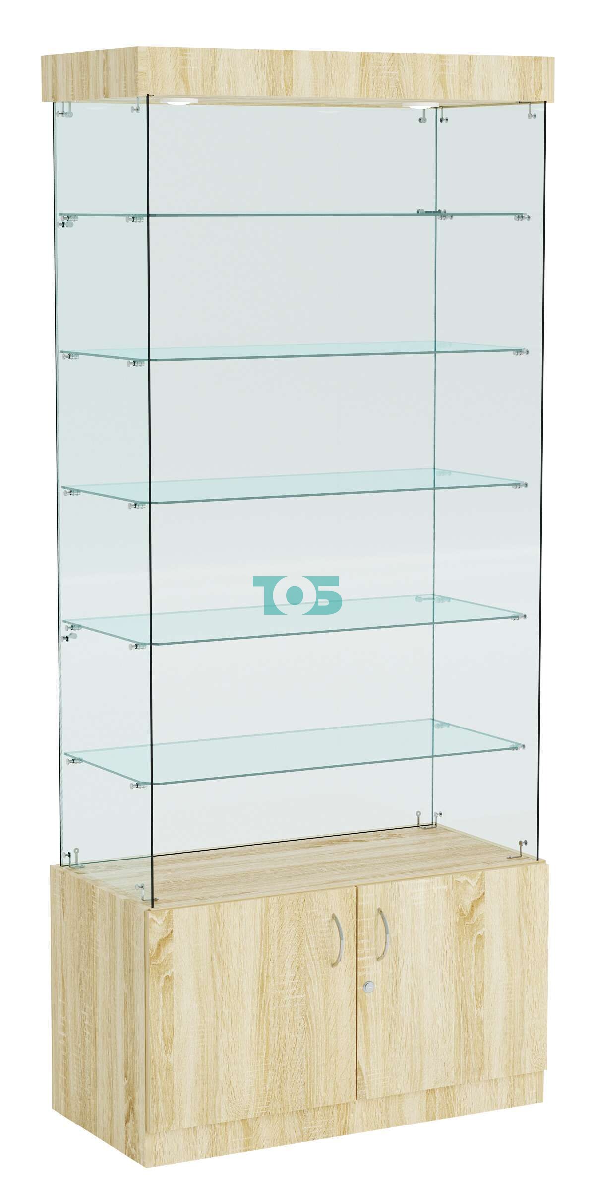 Стеклянная торговая витрина с прозрачными стенками и миниатюрными демонстраци- онными полочками Фрактал №1-3