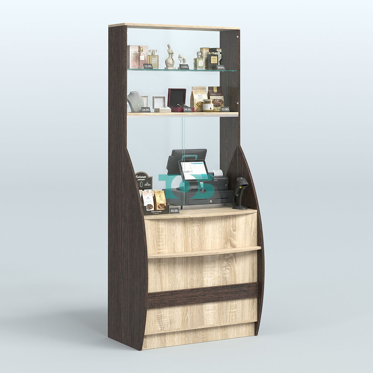 - функциональные полки и два выдвижных ящика с замками со стороны продавца;