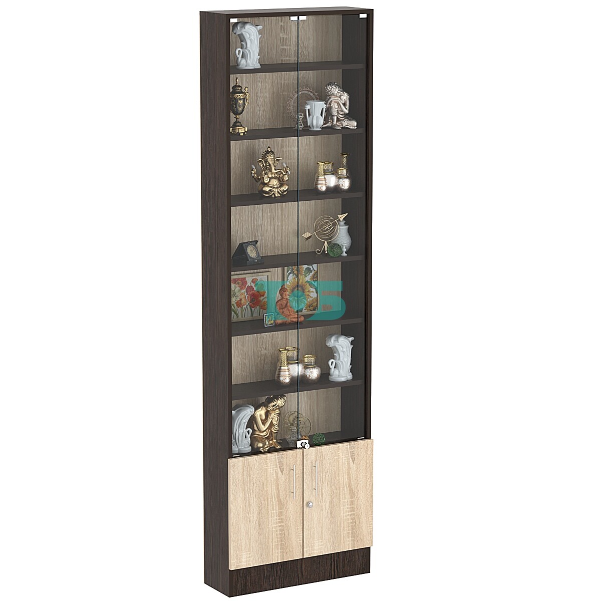 - прозрачная часть витрины укомплектована распашными стеклянными дверками с замком;