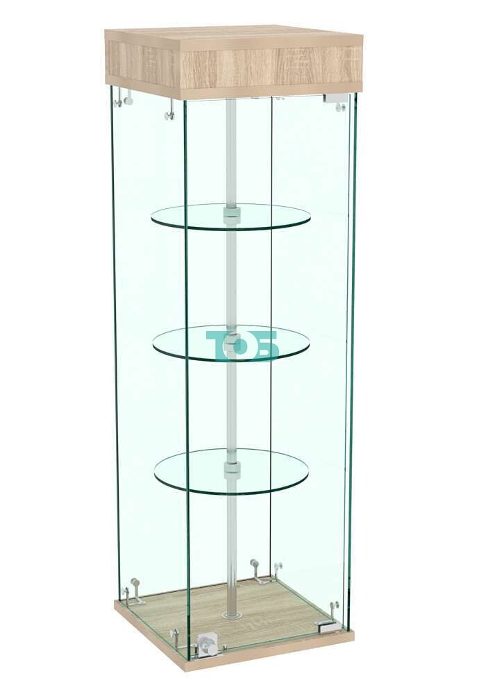 Стеклянная торговая витрина квадратная с зеркалом и десятью миниатюрными прозрачными полочками Фрактал №4-2