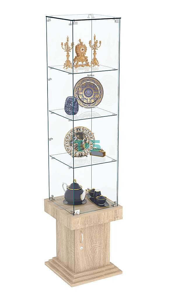 в прозрачной части витрины установлена распашная стеклянная дверь с замком;