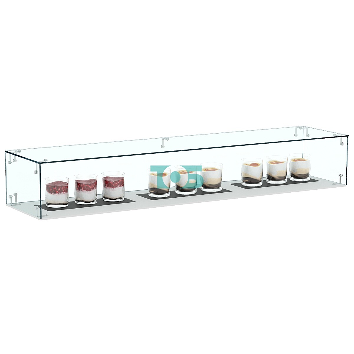 - витрина представляет из себя стеклянную, полностью прозрачную конструкцию, предназначенную для установки на готовые столешницы и прилавки;