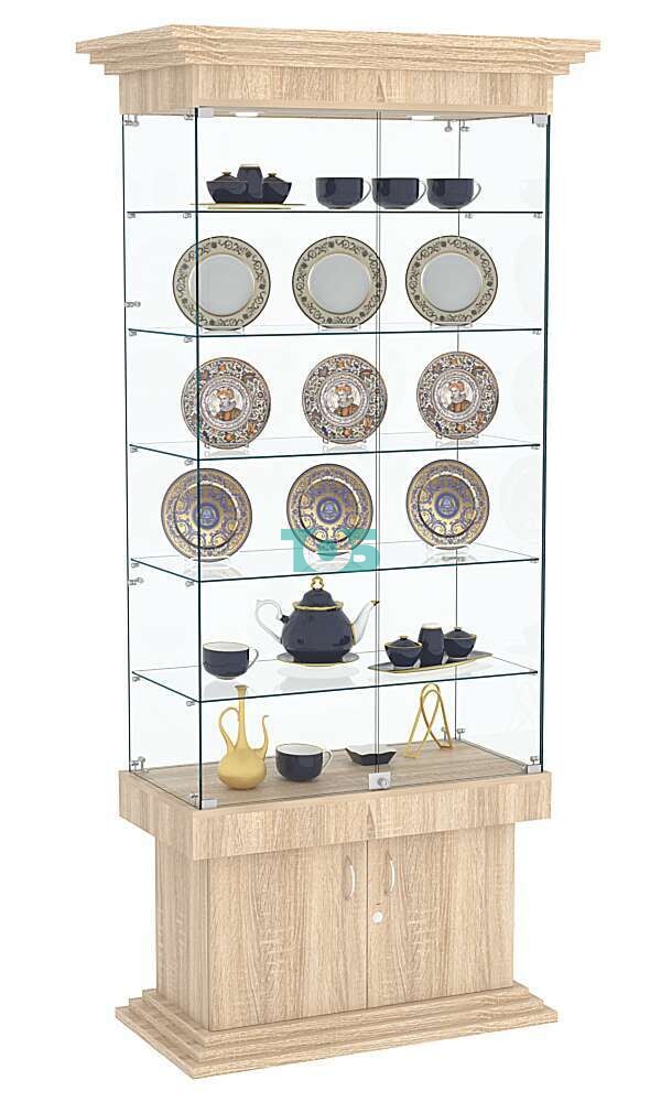 • присутствует верхняя подсветка, обеспечивающая равномерное освещение выставленных предметов.