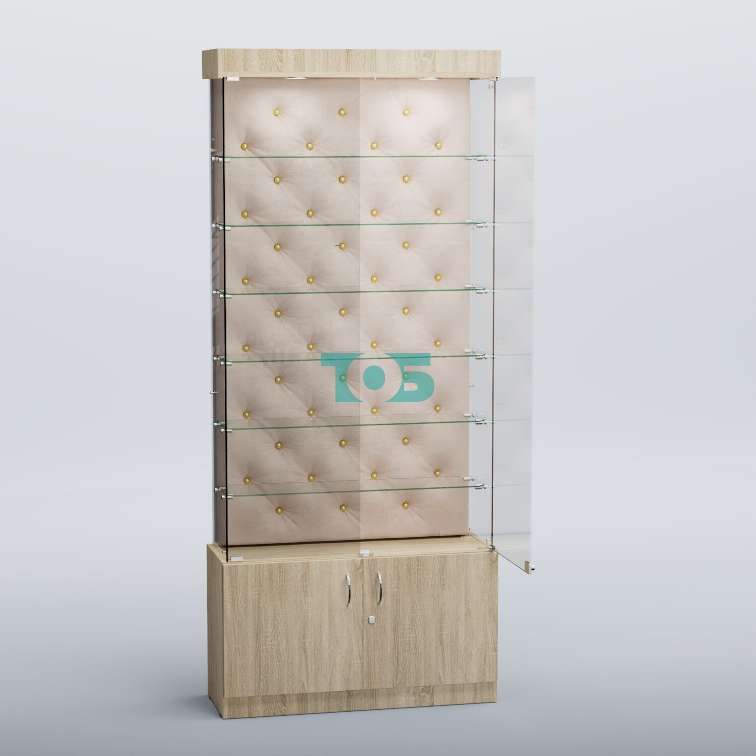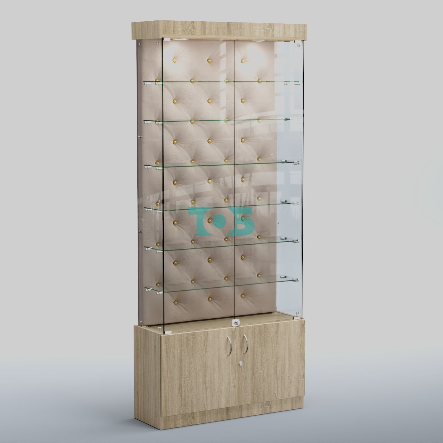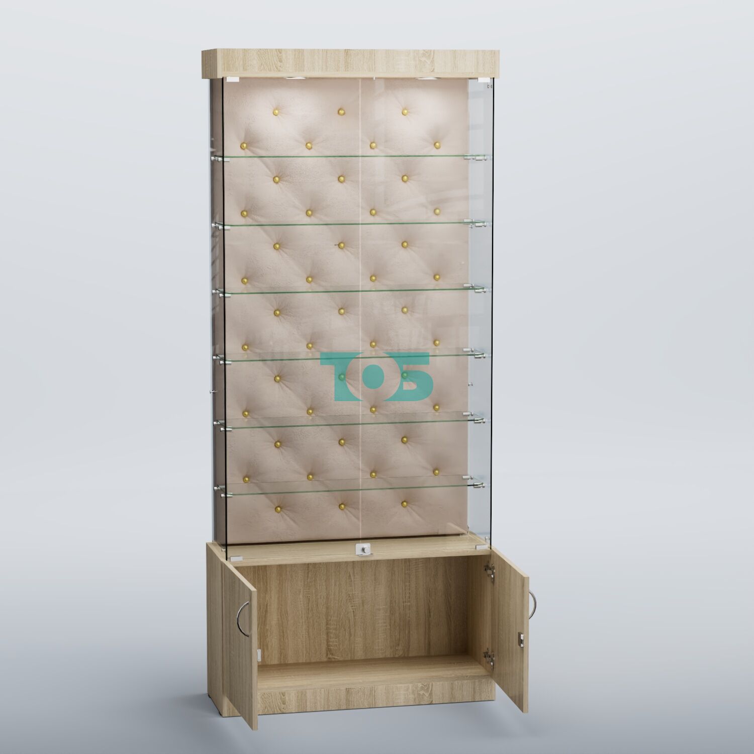 • верхняя часть витрины оборудована распашными стеклянными дверцами с замком;