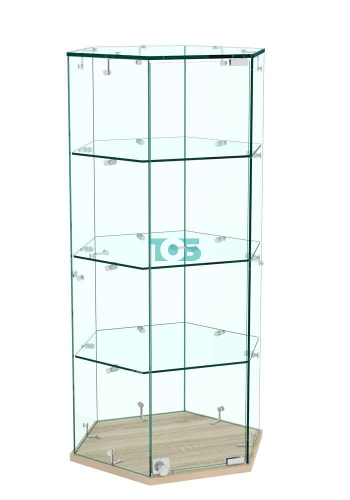• Верх – прозрачный стекло 8 мм: Обеспечивает легкость и открытость, улучшая обзор товаров.