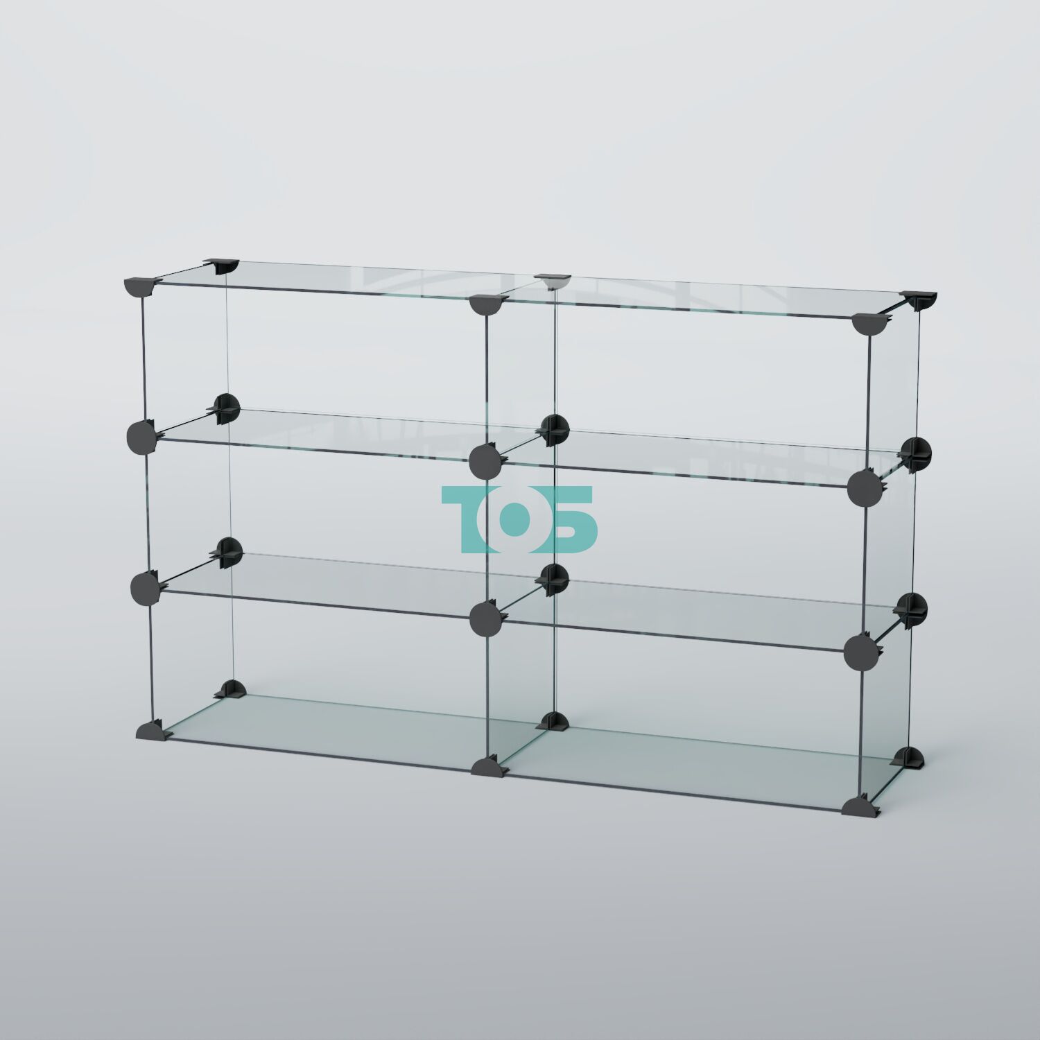 Модульная конструкция с пластиковыми соединителями позволяет собирать стеллаж с полками без инструментов — вы просто соединяете модули между собой, получая ровно ту конфигурацию, которая нужна под ваши задачи. При необходимости витрину легко расширить или изменить.