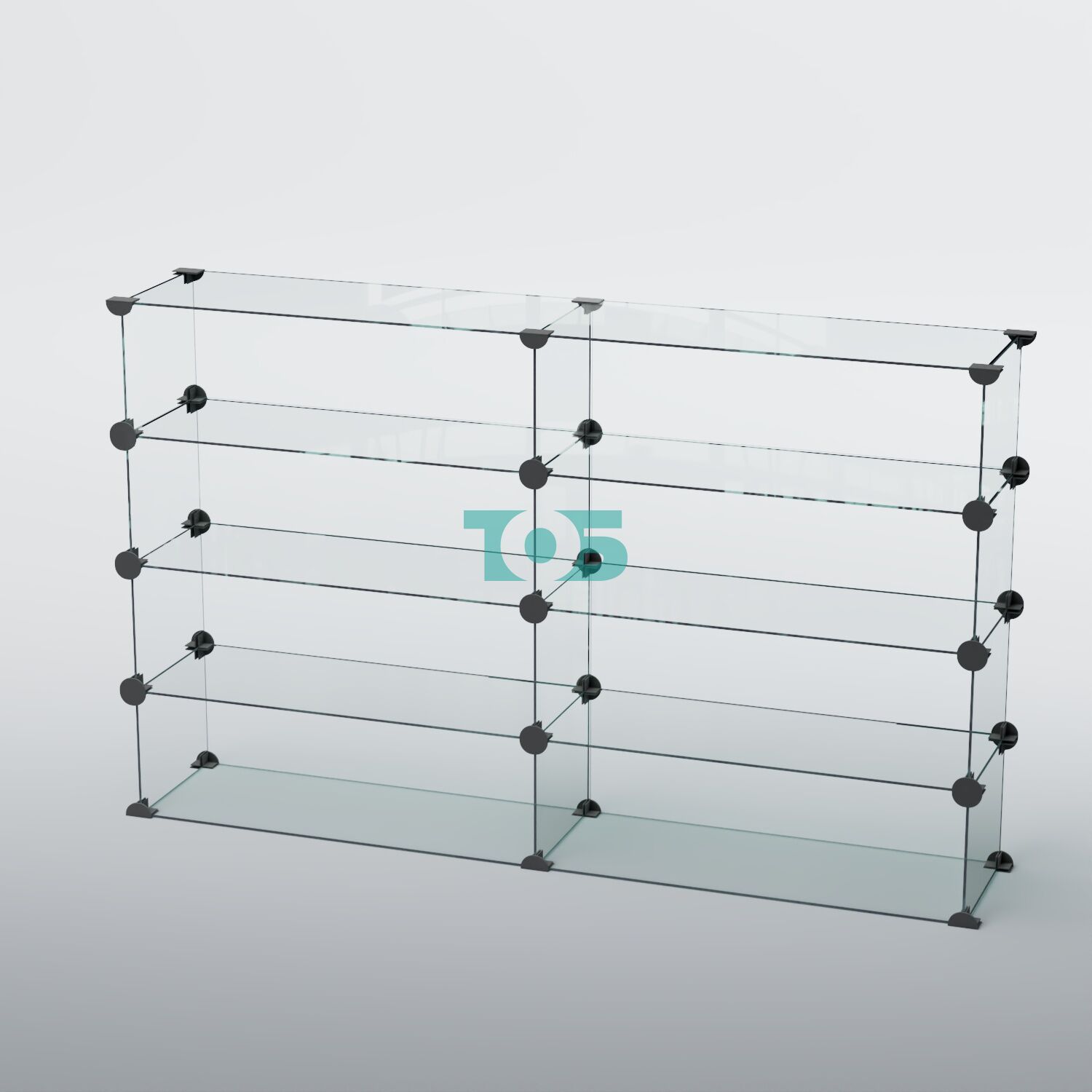 Модульная конструкция с пластиковыми соединителями позволяет собирать стеллаж с полками без инструментов — вы просто соединяете модули между собой, получая ровно ту конфигурацию, которая нужна под ваши задачи. При необходимости витрину легко расширить или изменить.