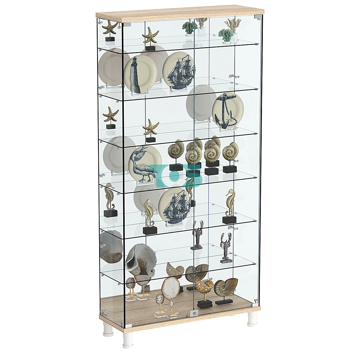 Высота ножек составляет 100 мм, с возможностью регулировки, что позволяет легко адаптировать витрину под особенности вашего помещения и гарантирует её стабильность на любой поверхности.