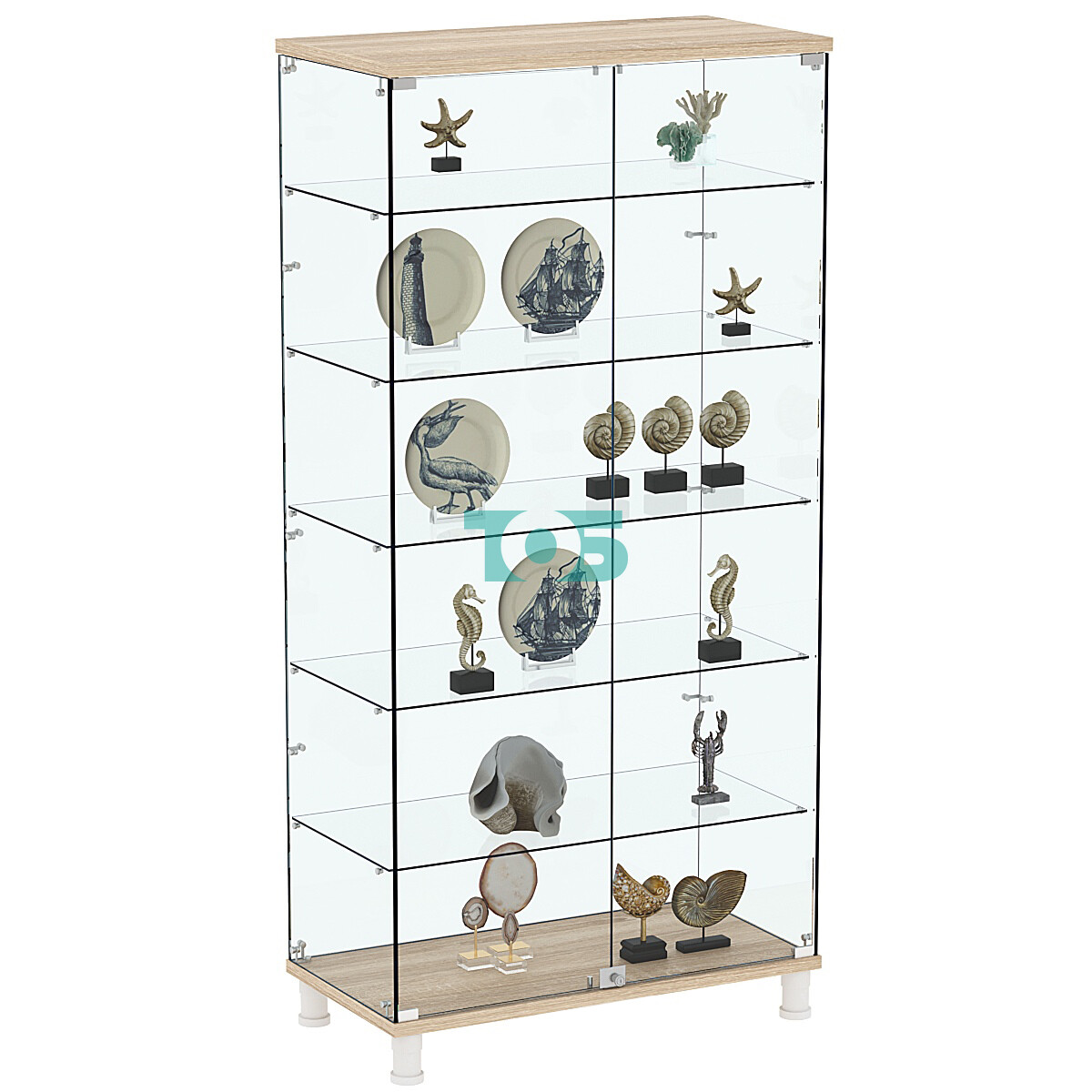 Высота ножек составляет 100 мм, с возможностью регулировки, что позволяет удобно адаптировать витрину к особенностям вашего помещения и гарантирует её устойчивость на любой поверхности.