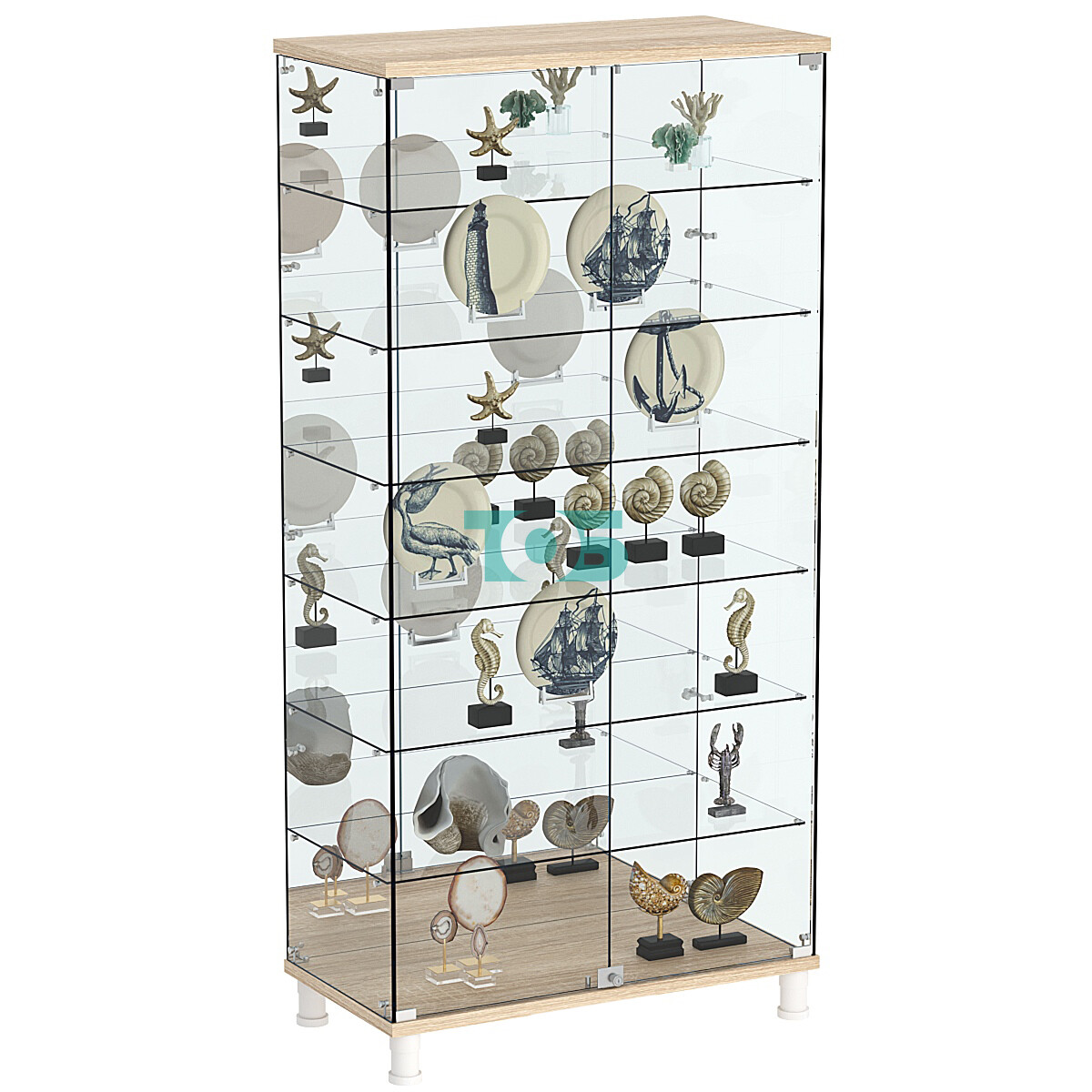 Задняя стенка витрины выполнена из зеркала, что создает эффект глубины и визуально увеличивает пространство, а также добавляет элегантности и привлекательности вашей экспозиции.