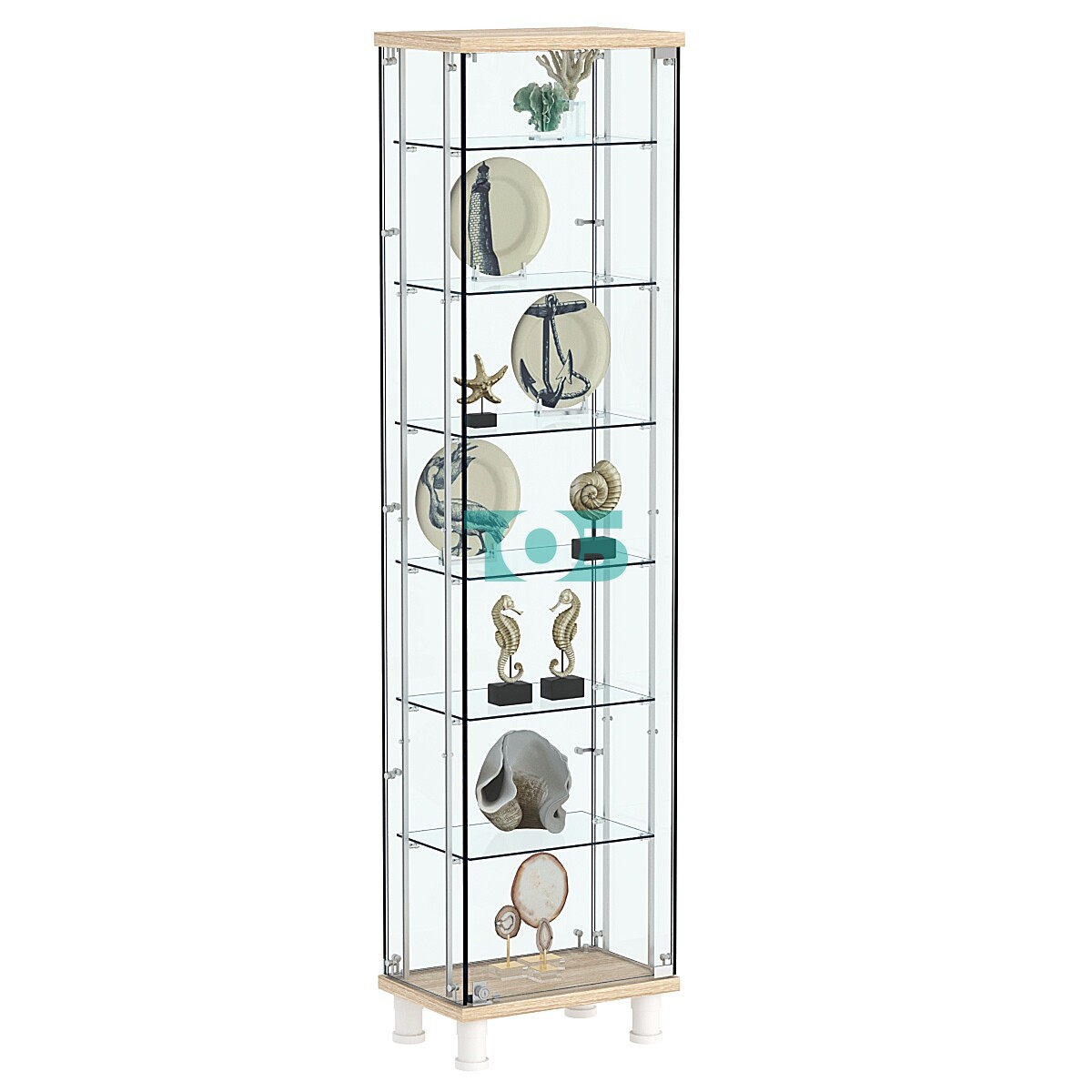 • Количество полок: Витрина укомплектована шестью стеклянными полками, что предоставляет достаточно пространства для размещения разнообразной продукции. Среднее расстояние между полками составляет 235 мм, оно адаптировано для товаров различных форматов и размеров.