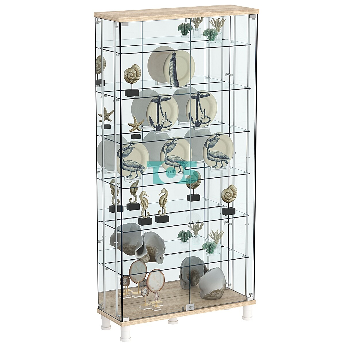 • Качественные материалы: Витрина изготовлена с основанием и крышкой из ДСП толщиной 25 мм, что гарантирует высокую прочность и долговечность конструкции.