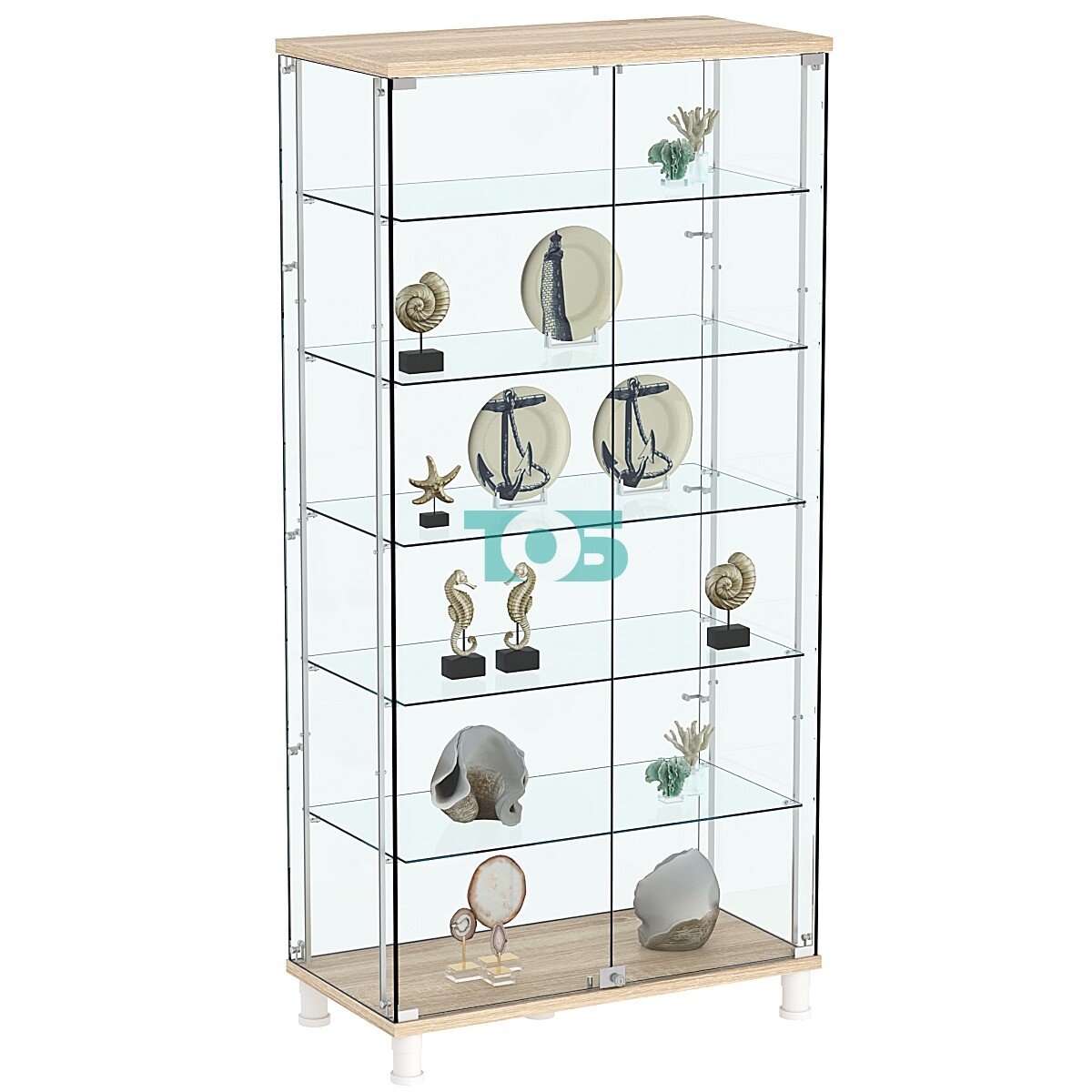 Витрина включает пять стеклянных полок, среднее расстояние между которыми составляет 275 мм, что позволяет эффективно размещать продукцию различной высоты и формата.