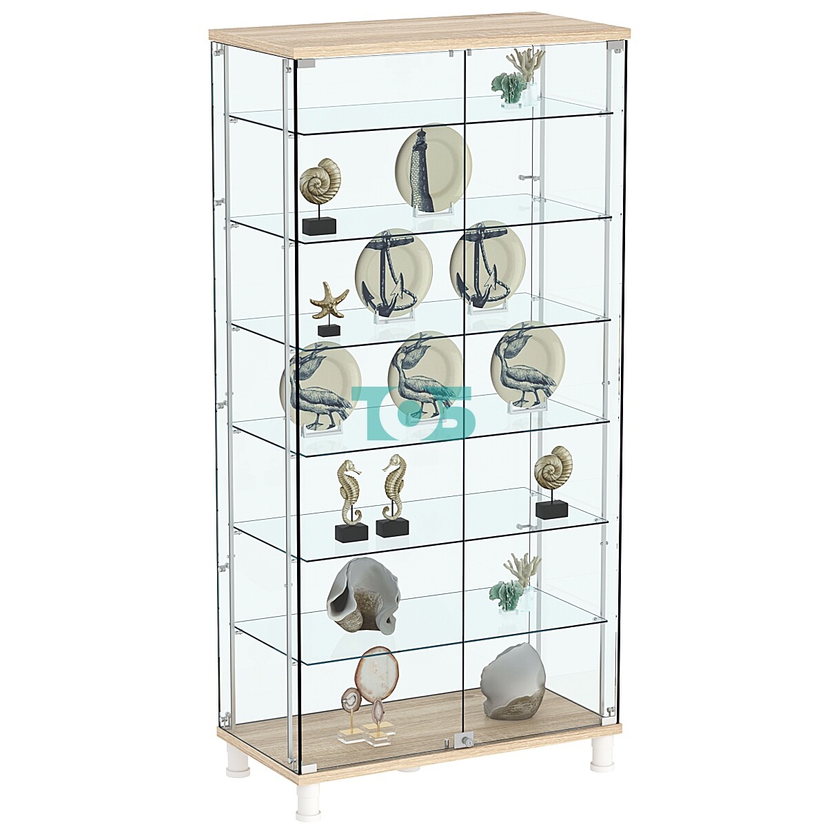 Витрина включает шесть стеклянных полок, среднее расстояние между которыми составляет 235 мм, что позволяет удобно размещать товары различной высоты и формата.