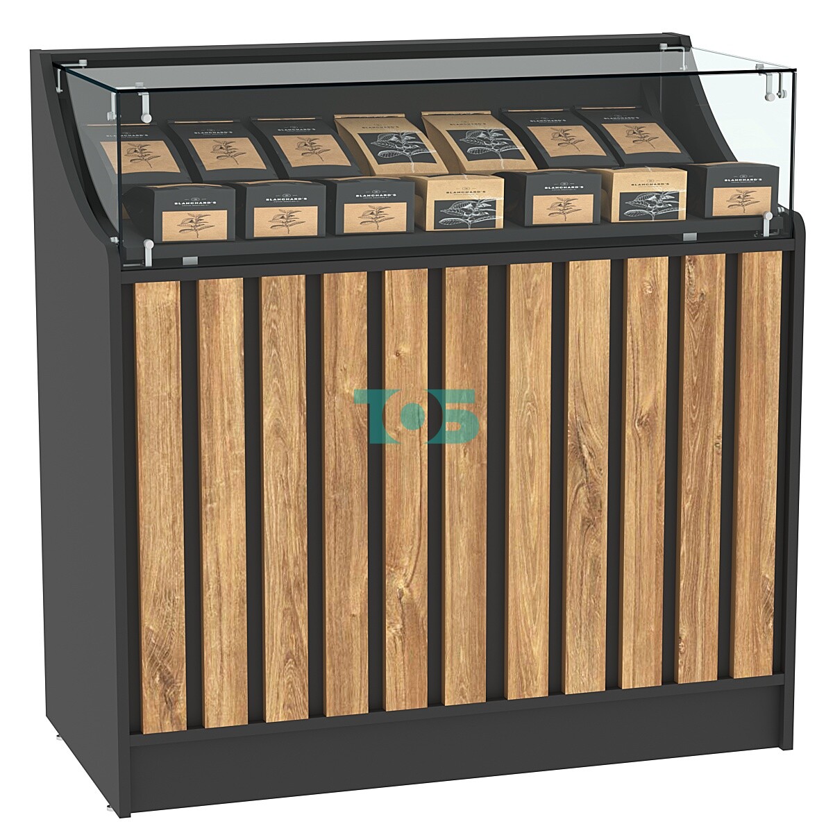 Эстетика: прозрачное стекло и декоративные рейки придают прилавку легкость и элегантность, гармонично вписываясь в любой интерьер.