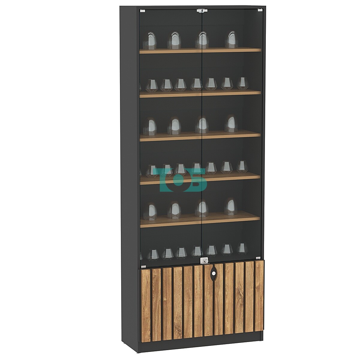 Эстетичный внешний вид: стеклянные двери и декорированные рейки придают витрине современный и стильный вид.
