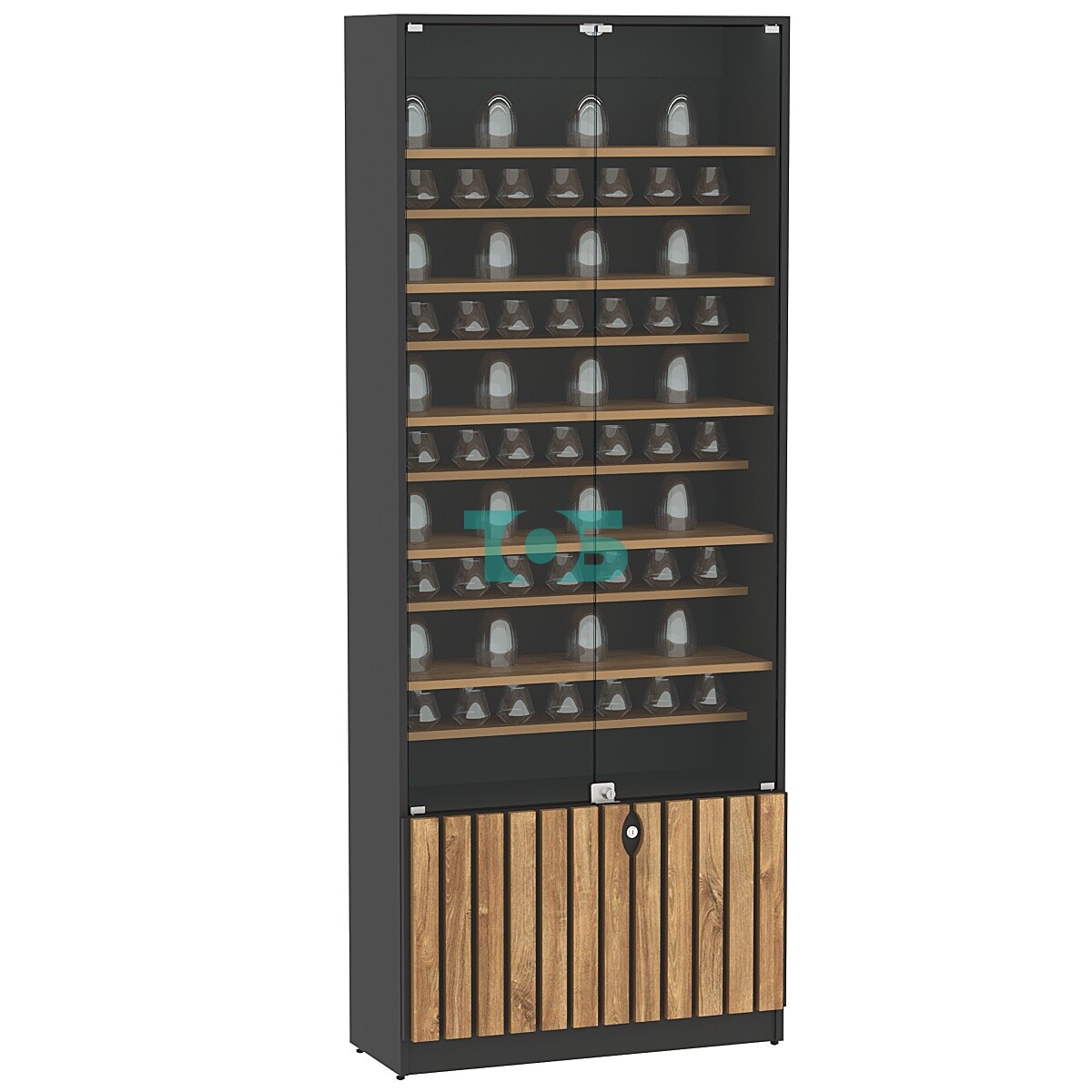 Витрина серии “Смок” №1-ДП-900 с дополнительными полками - это стильное и функциональное решение для магазинов, офисов и других коммерческих помещений. Прочный каркас из ДСП и стеклянные двери обеспечивают надежность и отличный обзор содержимого. Витрина также оснащена алюминиевым профилем для установки светодиодной подсветки, что придает ей современный вид и подчеркивает представленные товары.